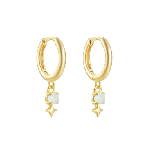 Add a touch of magic to your look with these sterling silver huggie earrings, featuring shimmering opalite stone and delicate star accents. Their petite design hugs your ears comfortably, making them perfect for everyday sparkle or special occasion shine. Brighten your style with a little celestial charm!
